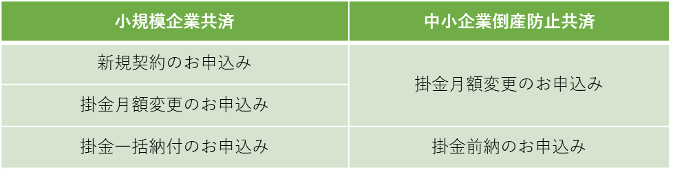 小規模企業共済・中小企業倒産防止共済・中小企業退職金共済に係る代理店事務の受付体制について