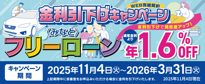 〈みなと〉フリーローンは使いみち自由!お借入可能額は10万円~1,000万円。固定金利で毎月定額返済で計画的にご利用いただけるローンです。担保・保証人は不要です。