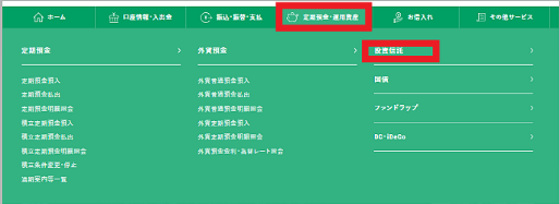 01マイゲートにログインして、左側のサービスメニューから「投資信託」をクリックします。