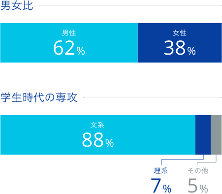 学生時代から様々な取り組みをしているな中で、人と関わる機会が充実している社員が多い傾向が特徴として見受けられました。
